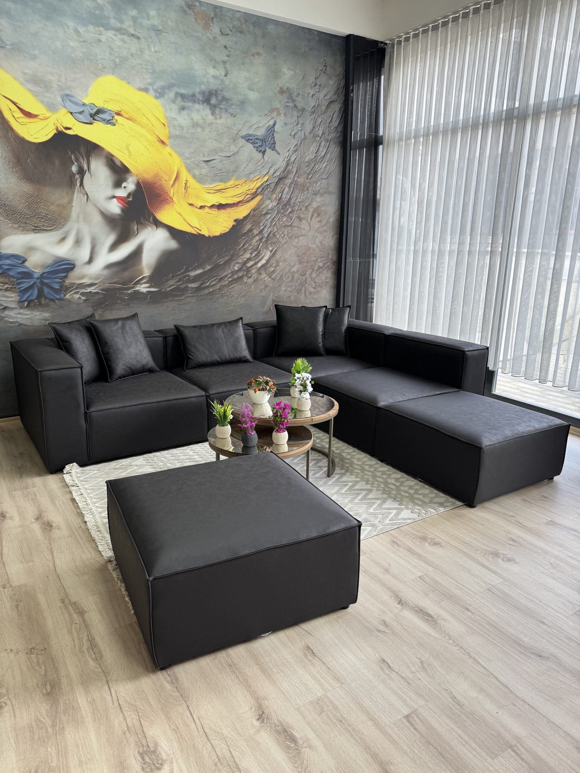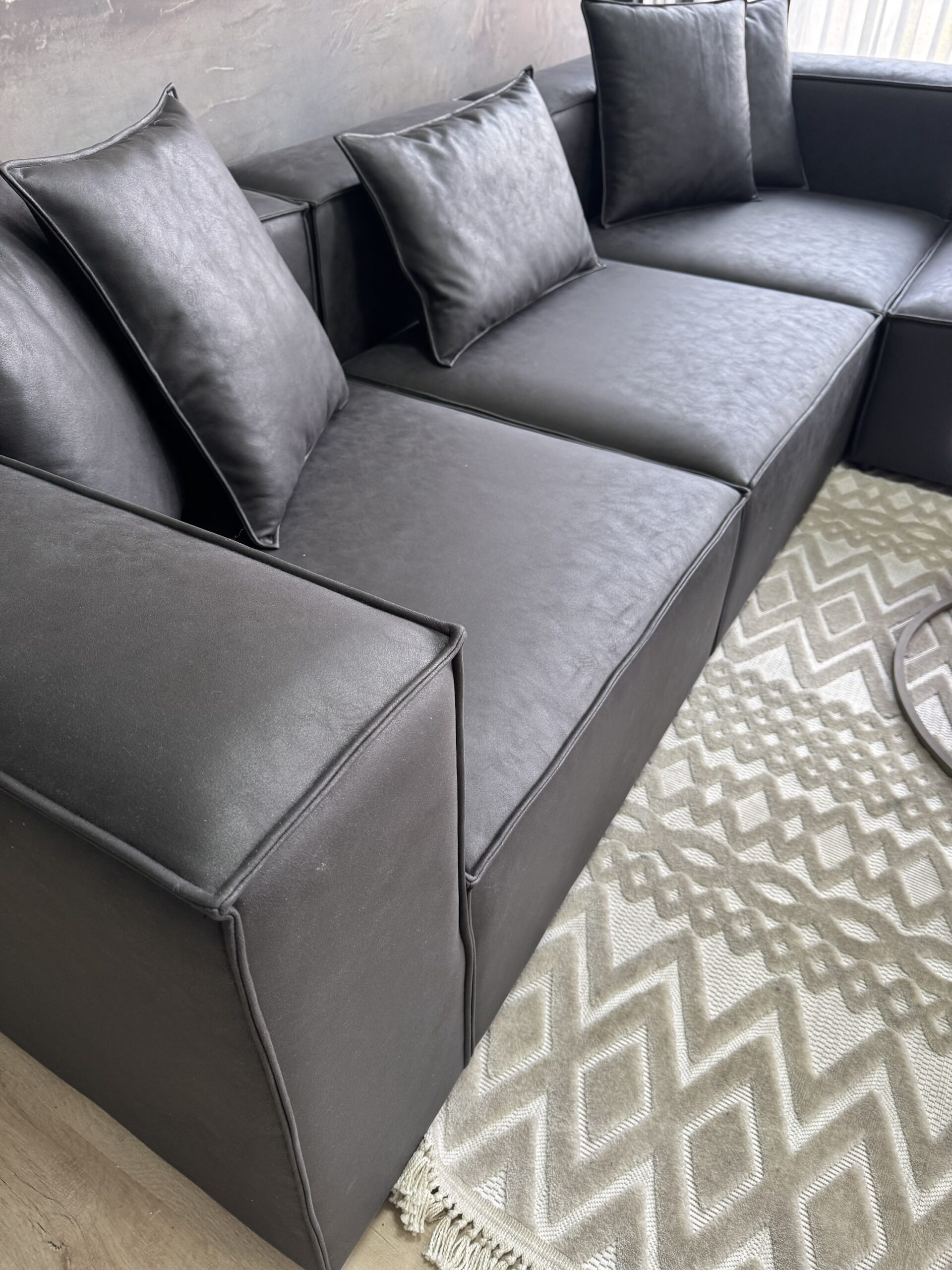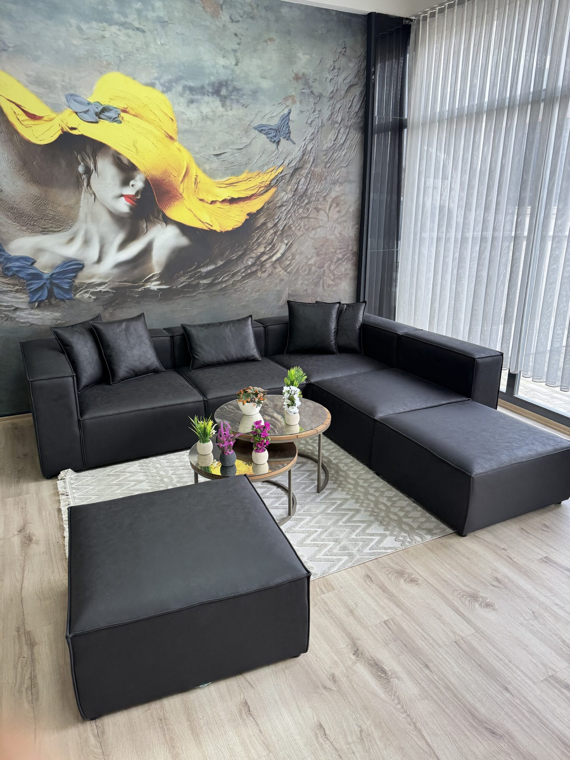 Angelo 6 modül siyah nubuk köşe koltuk takımı
